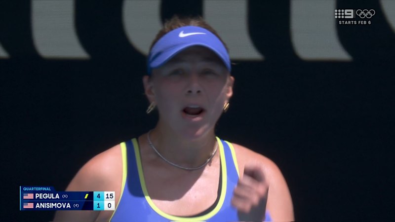 American player Amanda Anisimova gives herself a whack and a talking to as she battles countrywoman Jessica Pegula. January 28, 2026 โ 2.09pm