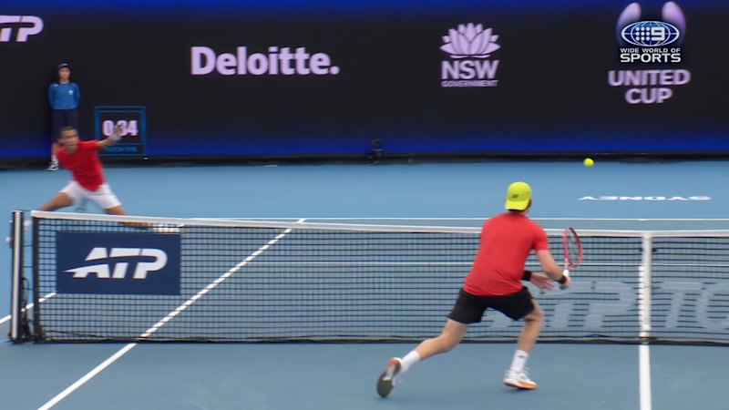 Felix Auger-Aliassime threads the needle with an unbelievable cross-court pass, leaving Zizou Bergs stranded at the net. January 6, 2026 โ 1.20pm